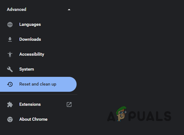 - Now click on the Settings option and then on the Reset and clean up option on the left side.