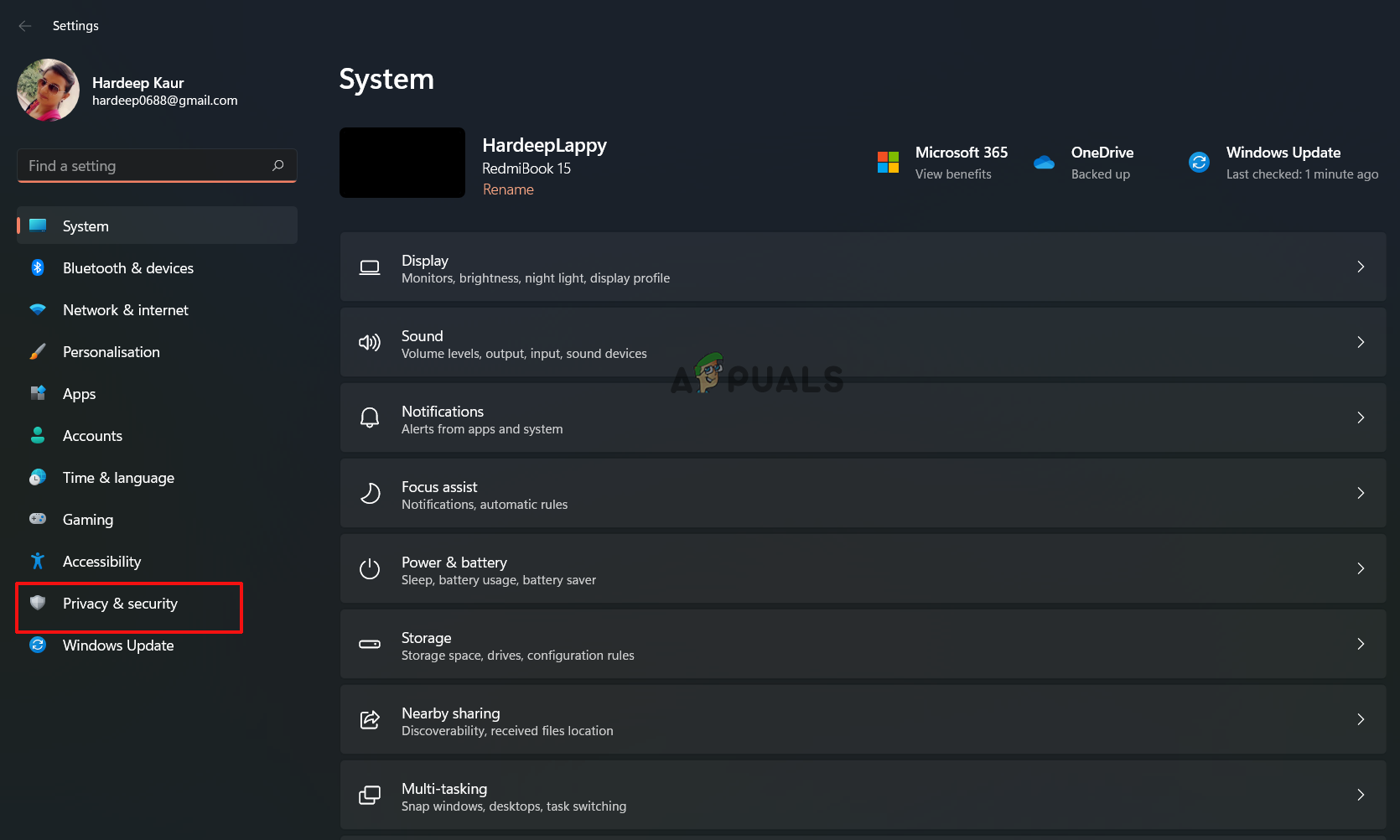 - Now click on the Settings option and then click on the Privacy & Security option.