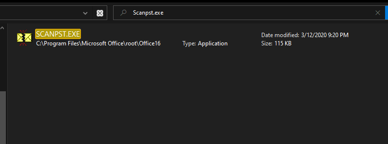 Opening the ScanPST.exe utility Note: In case you can’t find the SCANPST executable via the search function, you can attempt to find it manually in one of the following locations: