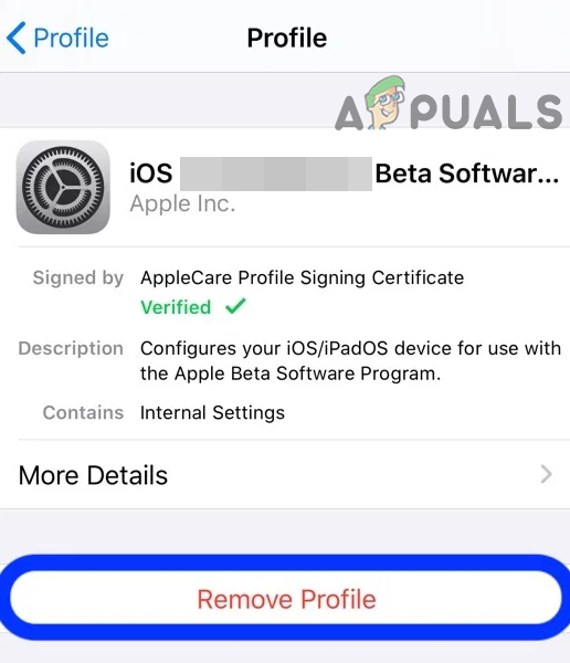 - Then tap on Remove Profile for the public beta.