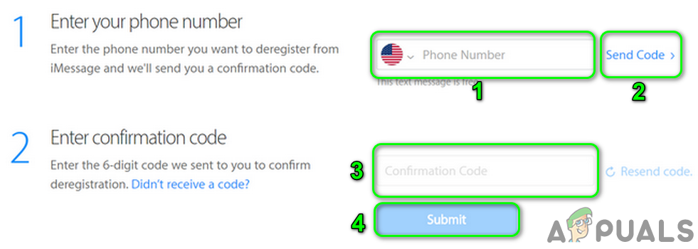 Deregister Your Number From iMessage - Now enter the confirmation code in the site and click on Submit.