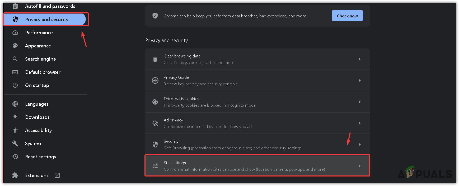 - From here, navigate to Site settings.