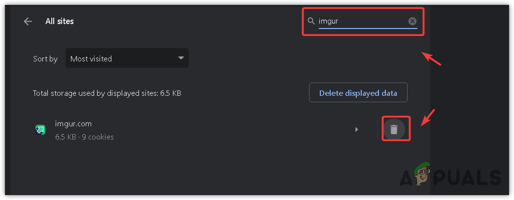 - Here, search Imgur, then click the delete icon to remove the site data.