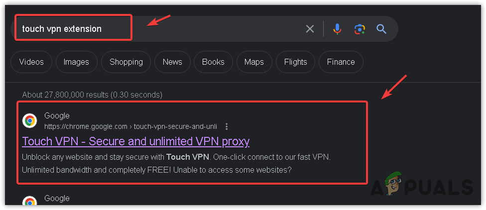 - Open a new tab and search for the VPN extension. If you already have an extension, you can connect to a VPN to access the Imgur. But if you don’t use the VPN, search for Touch VPN or any other VPN that you like to connect.
