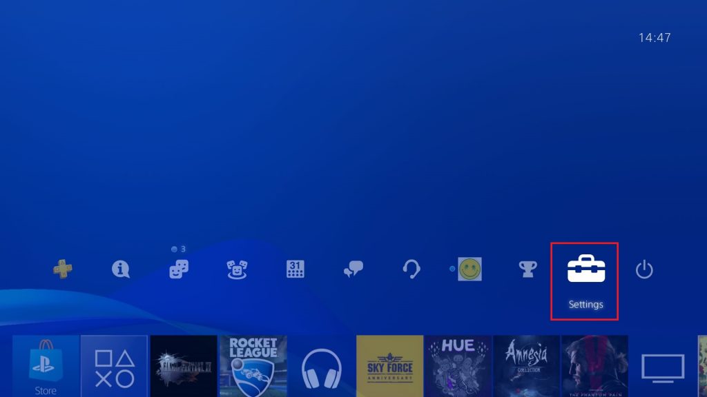 - On the dashboard of your PS4, navigate to Settings (briefcase icon).