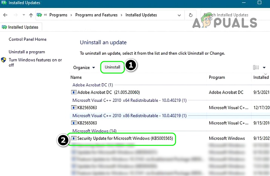 Open Uninstall Updates - Now follow the prompts on your screen to complete the KB5005565 uninstallation.