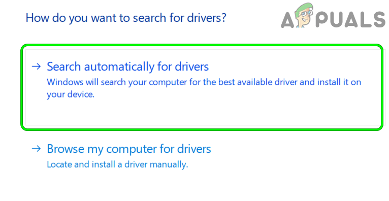 - Then select Update Driver and select Search Automatically for Drivers.