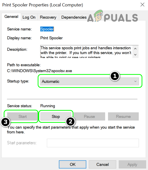 Open Services as Administrator - Now, double click on the Print Spooler service and set its Startup Type to Automatic.