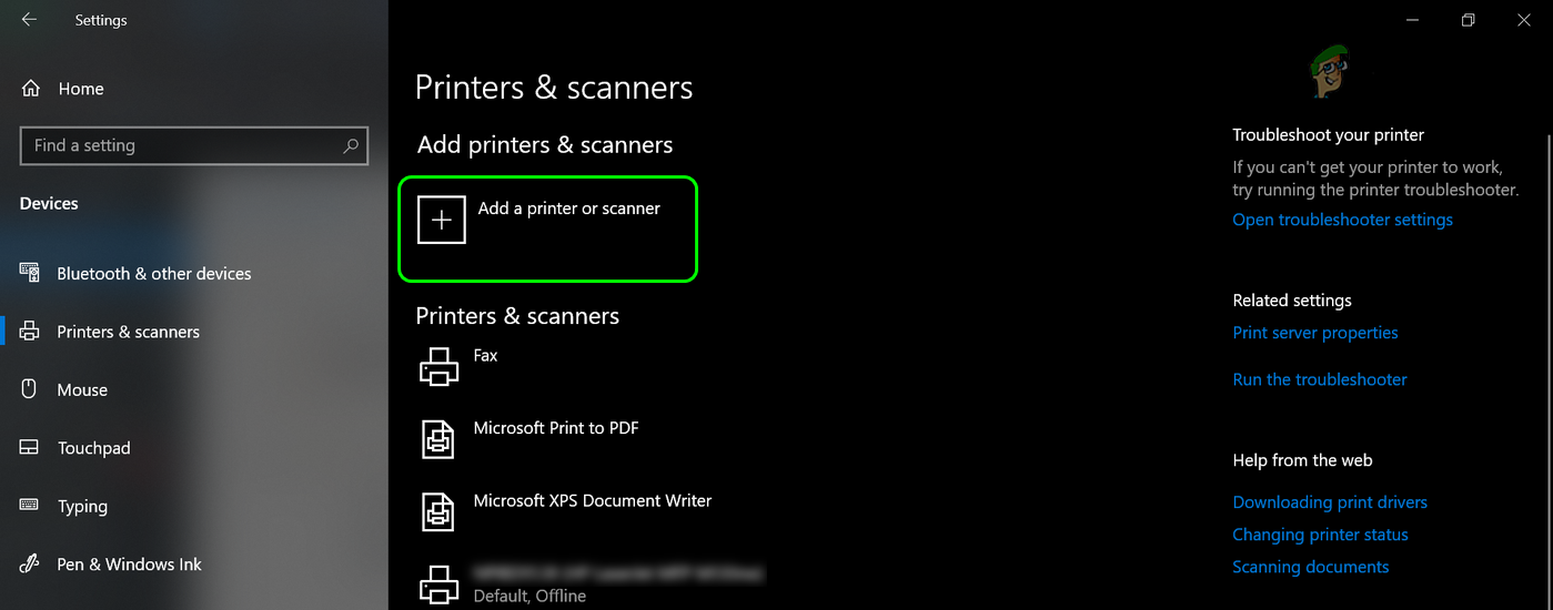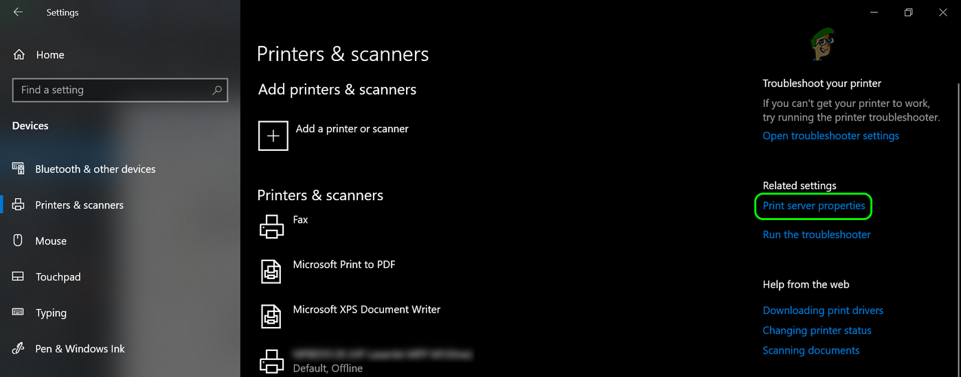 Remove Driver and Driver Package in the Print Server Properties - Afterward, restart your system and upon restart, head to Settings>> Devices>> Printers and Scanners.