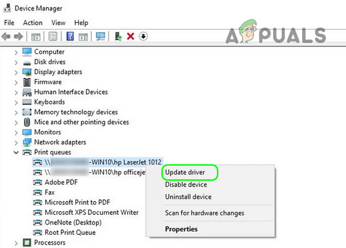 Update the Network Printer Driver in the Device Manager - Now select Search for Updated Drivers on Windows and afterward, check if the shared printer issue is resolved.