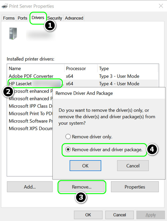 Open Print Server Properties - Now, head to the Drivers tab and remove the problematic printer driver from there as well.