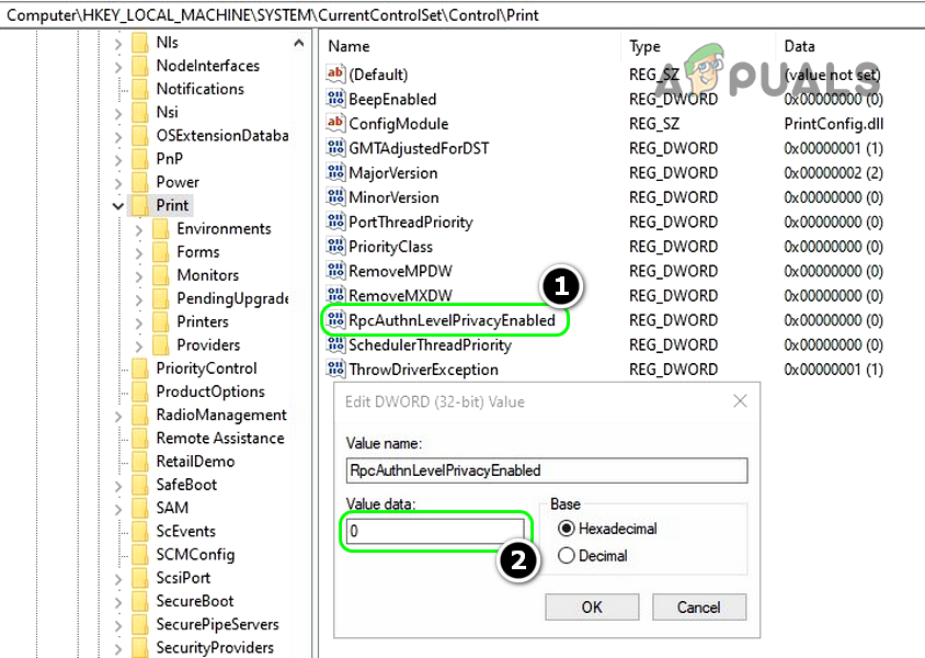 - Remove the RpcAuthnLevelPrivacyEnabled registry key from the system (if present) and restart your system.