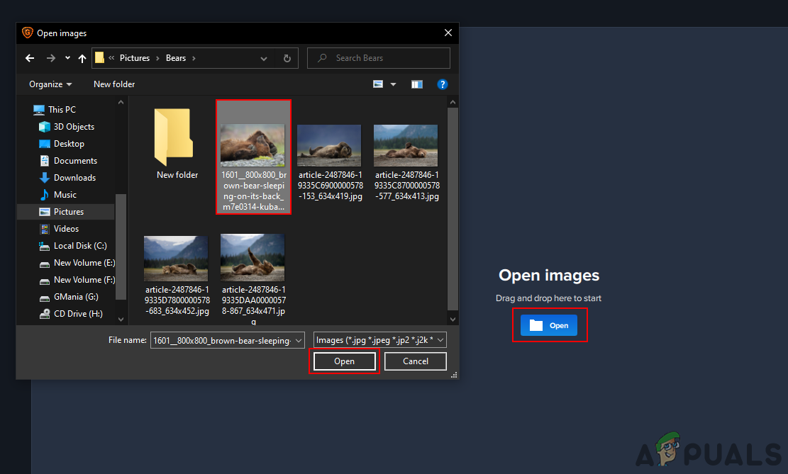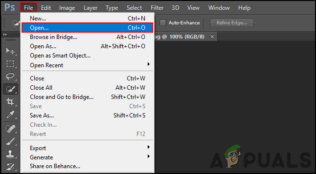 - Click on the File menu and choose the Open option. Now search for the image that you want to increase the resolution for and open it.