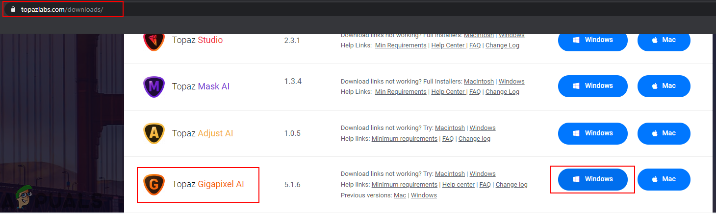 - Open your browser and go to the download page of Gigapixel AI. Click on the download button for your operating system. Install the application on your system and open it up.