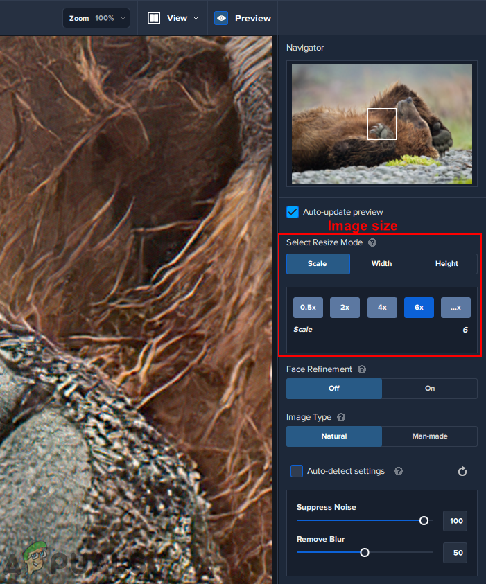 If the user doesn’t have an application that provides the image size feature, they can use the online image enlarger site to increase the resolution. There are many different sites that provide different kinds of features and quality for increasing the resolution of the image. Most of those sites require the registration of an account. We will be using PhotoEnlarger in this method to give the idea about increasing resolution online. This site doesn’t require any sign-up or anything.