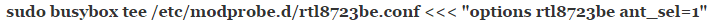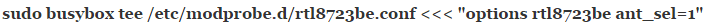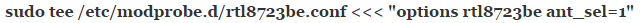 Note that you don’t need to operate as root to run either of these commands. Once you’ve found the number of your particular wireless adapter, you can try typing sudo modprobe -rv NAME at the command line and pushing enter followed by sudo modprobe -v NAME ant_sel=1 and pushing enter a second time. For instance, if you were using the Realtek 8188eu driver you could try sudo modprobe -rv rt18188eu followed by sudo modprobe -v rt18188eu ant_sel=1 while pushing the enter key after each of these. Users of the Realtek 8723be wireless driver would want to use rt18723be in place of rt18188eu in those commands. Note that GPL drivers for Ralink equipment should work the same way, but you may have some issues if you don’t use Realtek hardware. Fortunately, all Realtek drivers should function more or less the same.