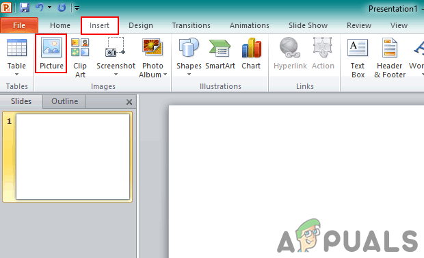 Saving the GIF animation to your computer - Open your presentation in Microsoft PowerPoint application. Click on the Insert tab and choose the Picture option.