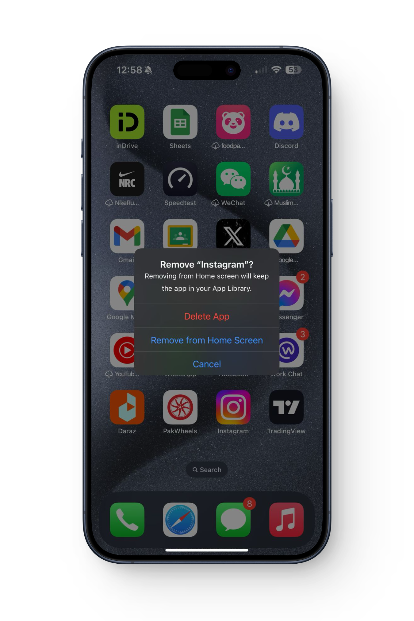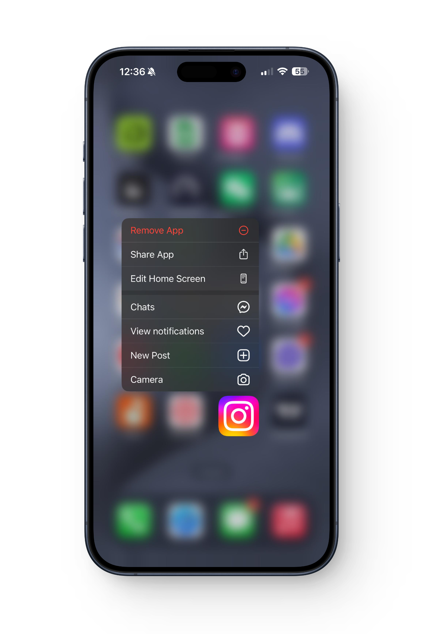 - Long-press on Instagram’s icon, and then tap on Remove App.