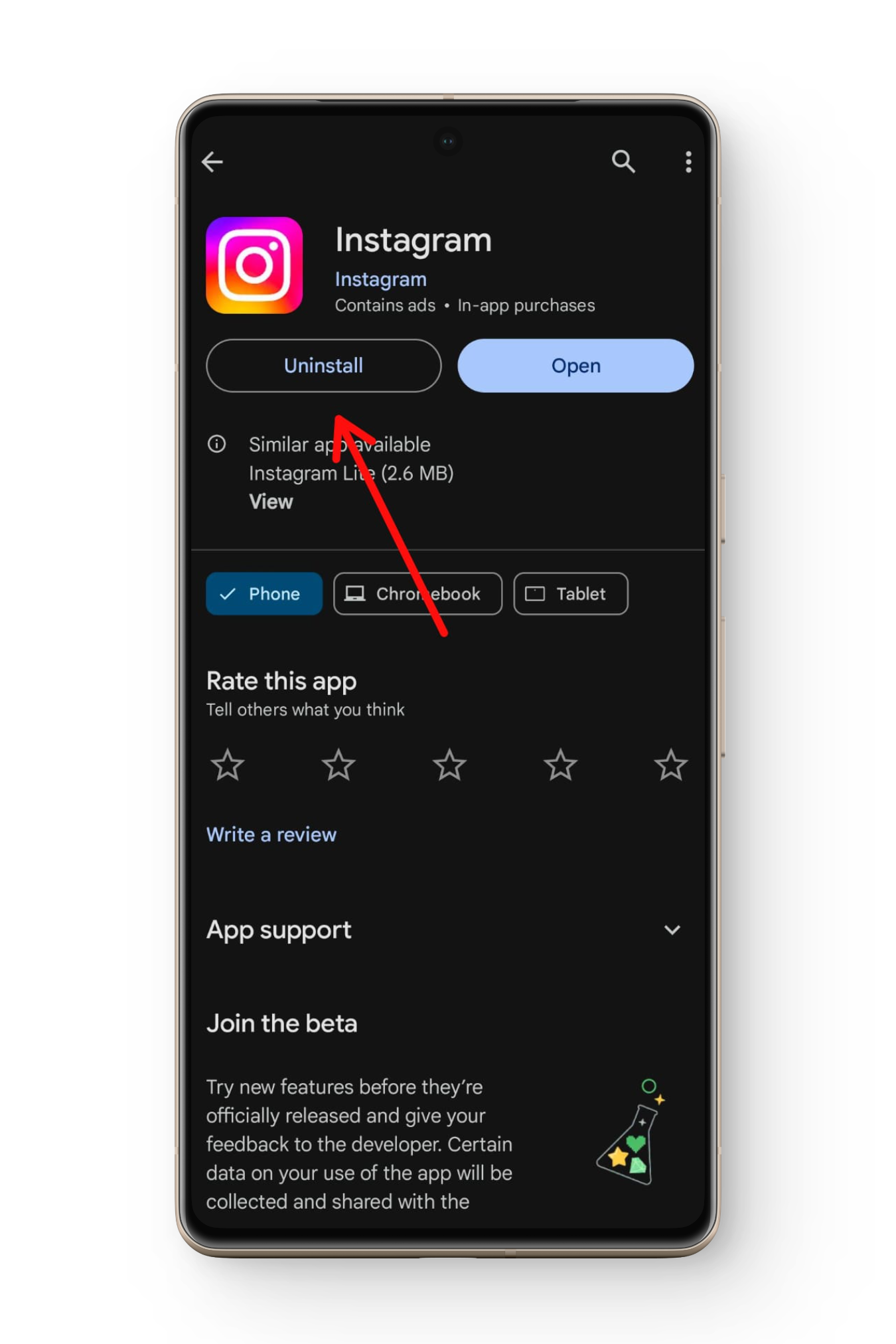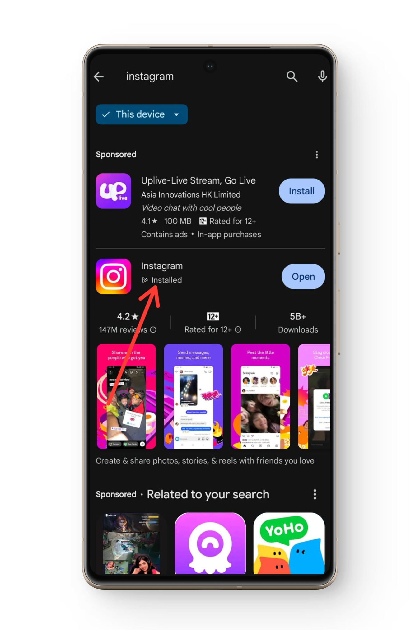 Installing Instagram - Once installed, log in with your account and see if the issue persists.
