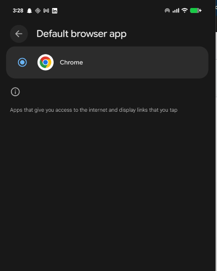 - Android: Settings > Apps > Default apps > Browser app > select Chrome (or your preferred browser).