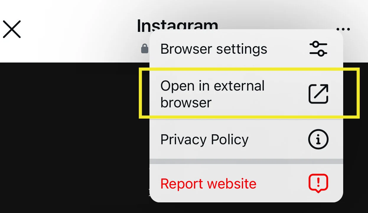 2. Use “Open in Browser” (Bypass Instagram’s In-App Browser)
