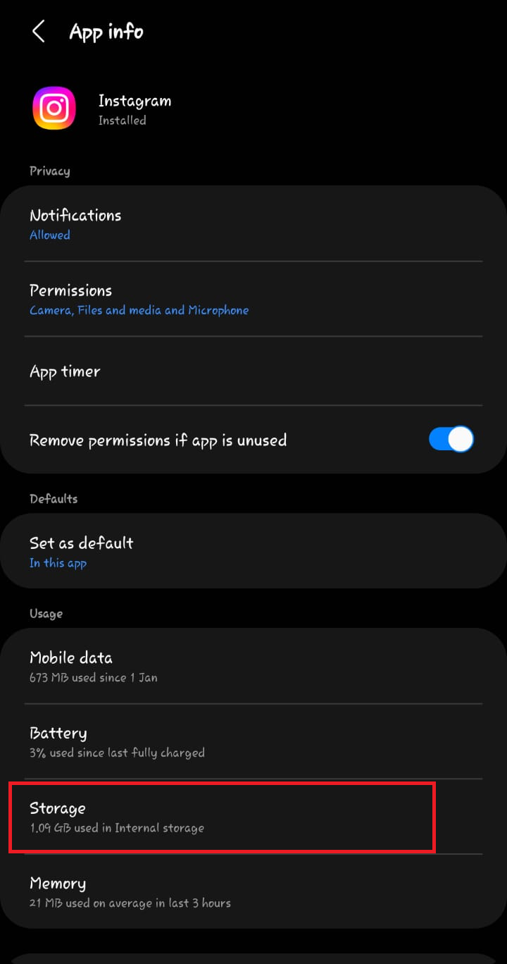 Running the Instagram app for long durations without clearing the cache and stored data may cause functionality issues. Resolve this by going to your phone settings and clearing the app’s Data and Cache. This will erase all saved data related to the app, and you will need to log in again.