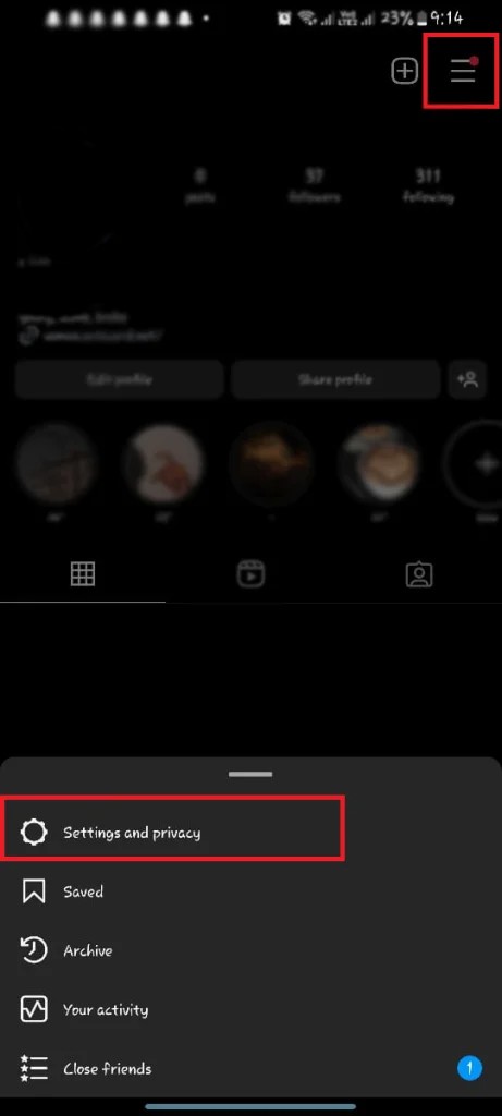- Navigate to your Profile, tap the Hamburger Menu in the upper-right corner, and select Settings and Privacy.