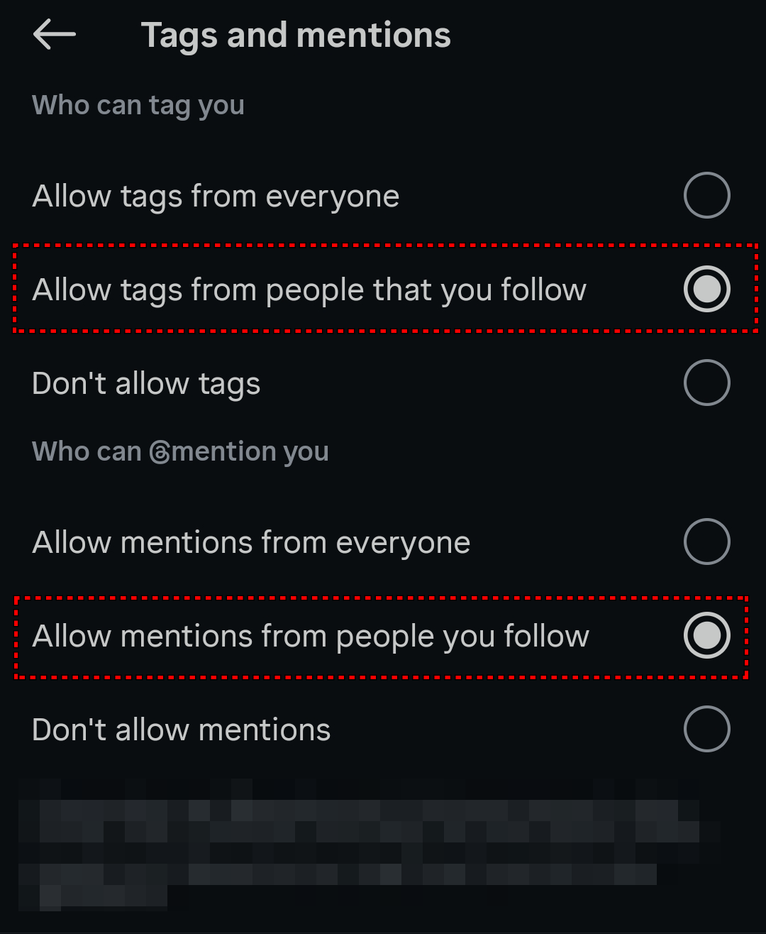 - Under Mentions, select Everyone or Allow tags from people that you follow.