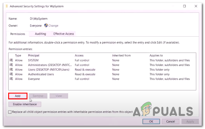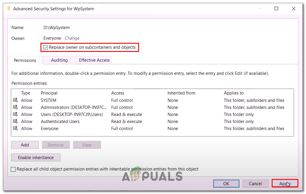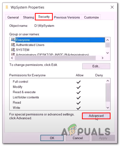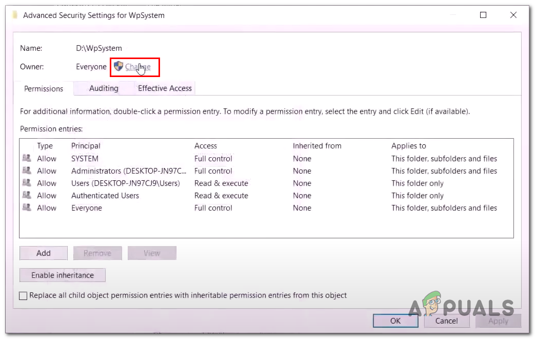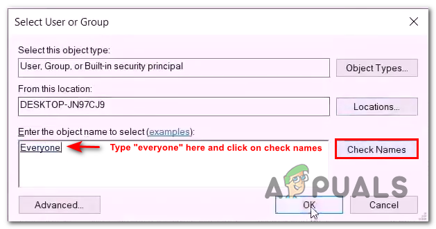 Renaming the WPsystems and Windows apps folder. - In the textbox, type Everyone and click on Check names.