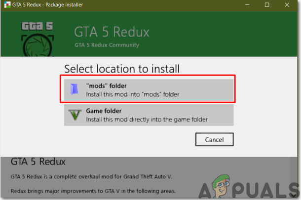 Click on the install option and then select the option to install the mod inside the mods folder. Wait patiently because copying files from the main GTA V folder requires some time and once complete run GTA 5 Redux to check whether it is working fine or not.