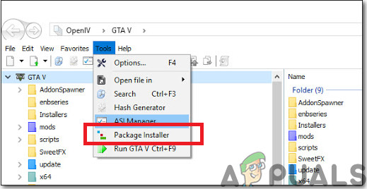 Note: Before proceeding to this step ensure that you have an un-modded version of GTA installed on your system otherwise some bugs might arise during installation. Download the latest version of GTA 5 Redux from Here and extract the zip folder. Navigate to the GTAV folder and in the upper left corner click the tools option. A dropdown menu will be displayed in front of you and from there select Package Installer.