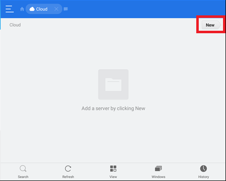 - Tap on the New button located in the top right corner of the screen. From there, select the cloud service you previously used to upload the APK. You will be prompted to insert the email and password associated with that cloud account.
