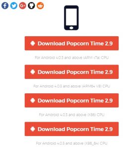 - Go to this link and download the appropriate Popcorn Time version according to your Android version and architecture type.