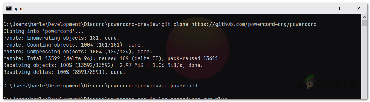 Changing into Powercord Directory - After that, run the following command to install Powercord using the npm package manager: