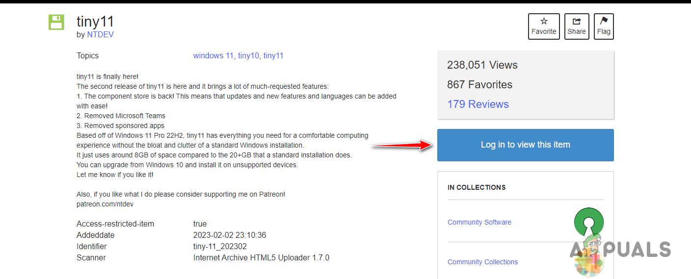 - To download the ISO image, you will need to create an account on the website. Click on the Log in to view this item option and create an account.