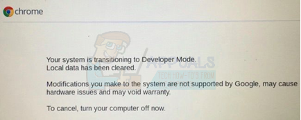 Once it’s done, unplug your USB. To download a different OS, you will need to put your Chromebook into developer mode. There are two methods to do this. If you are using an older Chromebook, there should be a physical button to enable developer mode. Search for the location of that button for your model and press it. If you are using a newer Chromebook, you will need to press a combination of keys. Press the Esc + Refresh keys, then push the power button. This will lead you to a recovery screen. Allow it to erase your data. This process can take up to 15 minutes, but there’s no need to worry; just let it reboot. Keep in mind that you will see this screen every time you boot up until you disable developer mode. However, your data will not be erased each time. You can press Ctrl + D to reboot quickly into Chrome OS.”