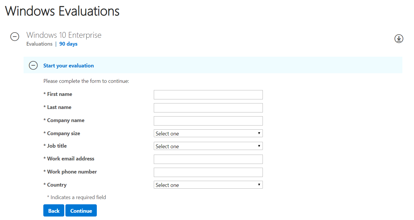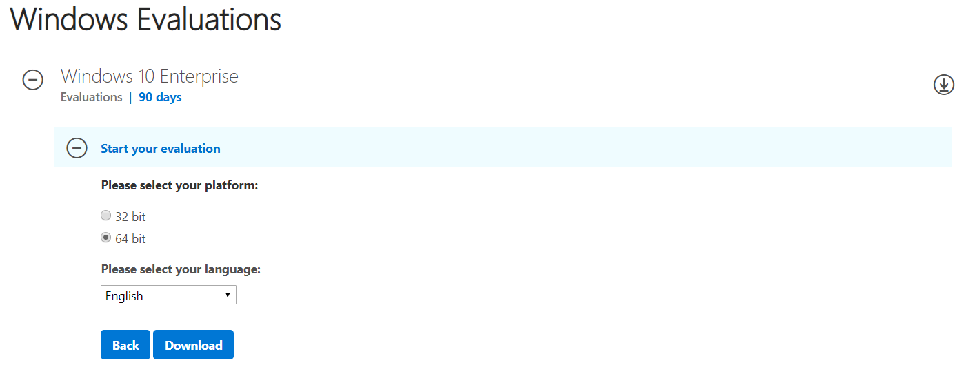 - Open Internet browser (Google Chrome, Mozilla Firefox, Edge or others) and open Microsoft Evaluation Center on the link