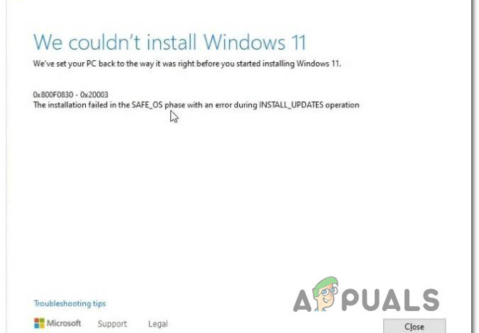 Some Windows users are unable to clean install or make the upgrade to Windows 11 – every attempt ends with the 800f0830 – 0x20003 error (The installation failed in the Safe_OS phase with an error during INSTALL_UPDATES operation).