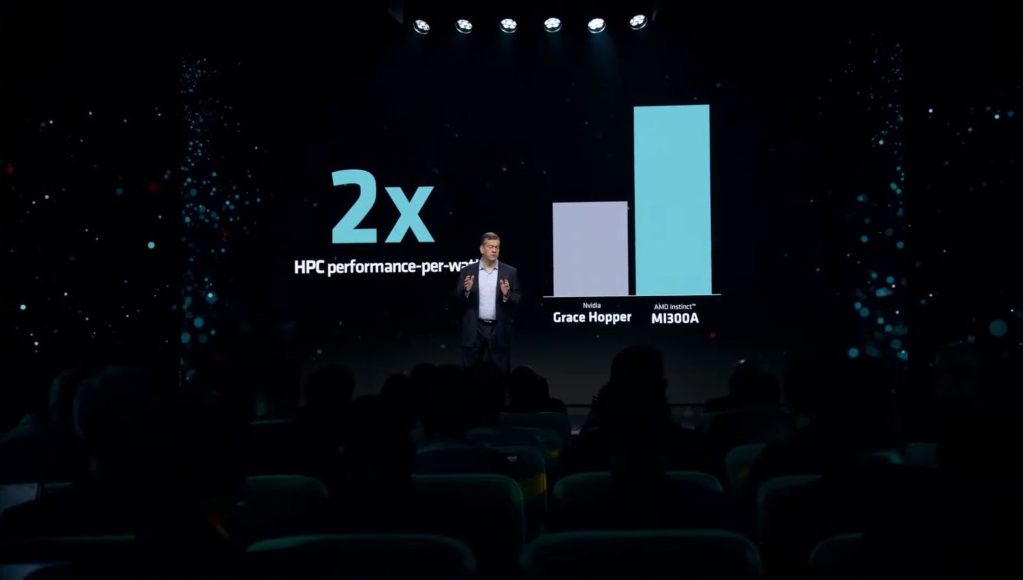 This may seem outlandish, but AMD is claiming that the MI300A is 2x more efficient than NVIDIA’s Grace Hopper super chip. We are unaware of methods and benchmarks used to achieve this metric, although this is massive, even in certain scenarios.