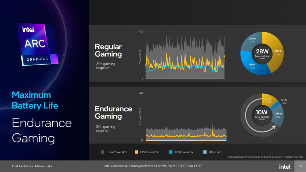 Basically, Meteor Lake’s iGPU can operate at powers as low as 10W. Moreover, users plugged-in the wall can enjoy high-refresh-rate gaming as Xe-LPG can boost remarkably high.