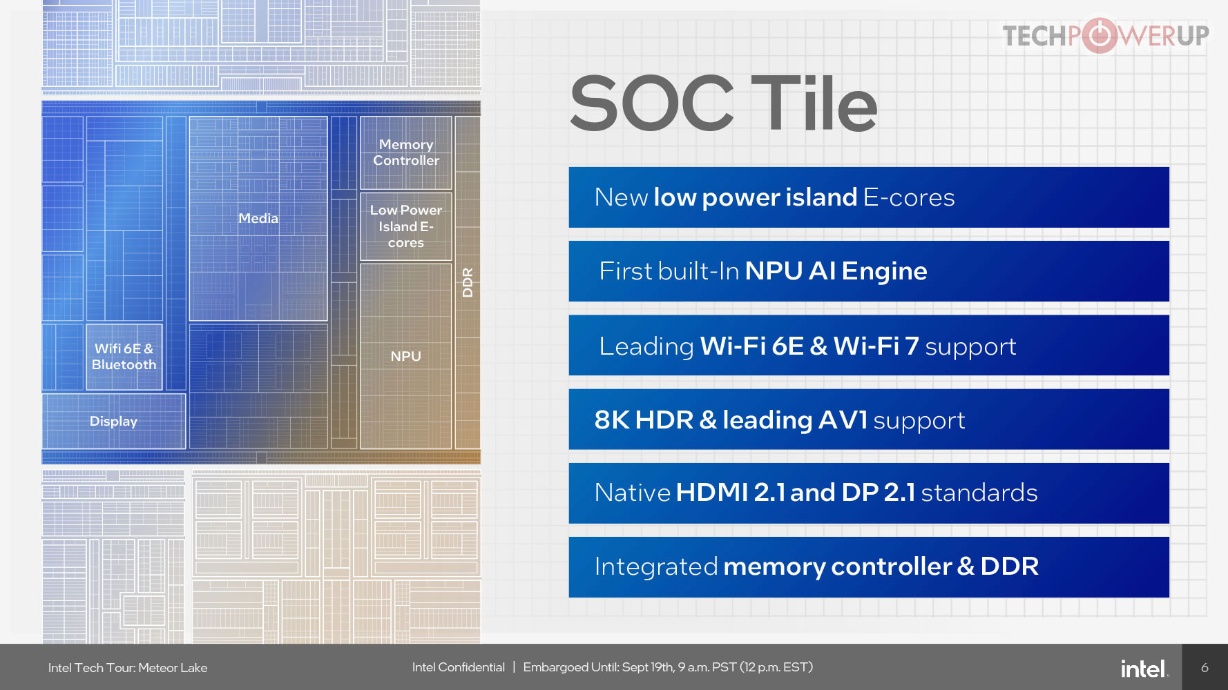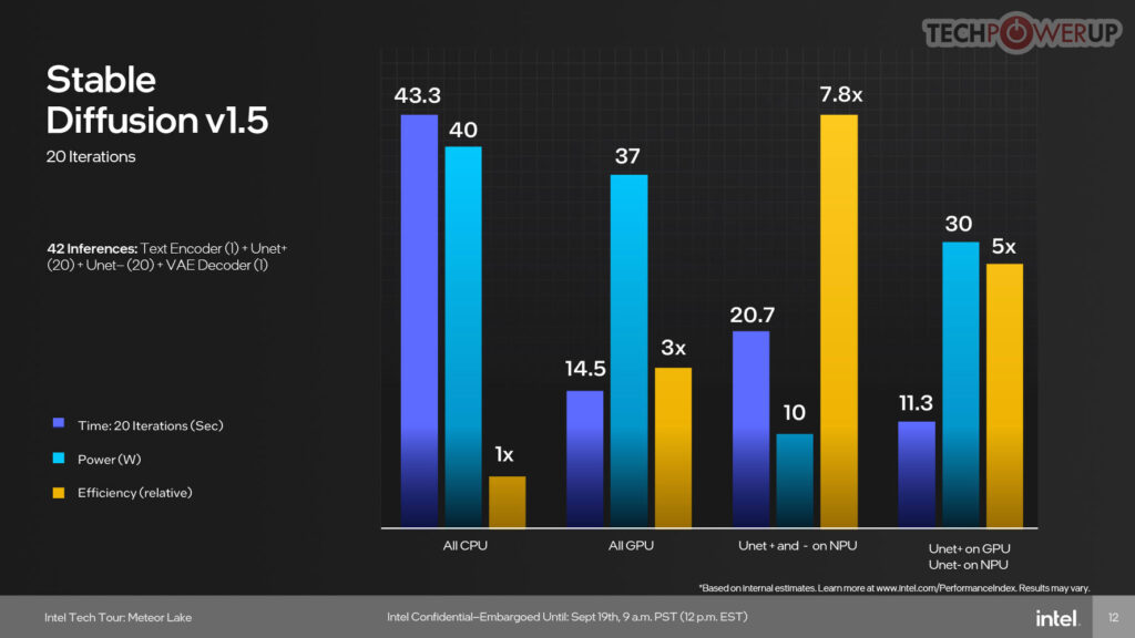Intel’s NPU, present in the SoC Tile is 8x more efficient in AI workloads than if you were to use a typical iGPU + CPU combination. The NPU will be available across all Meteor Lake SKUs.