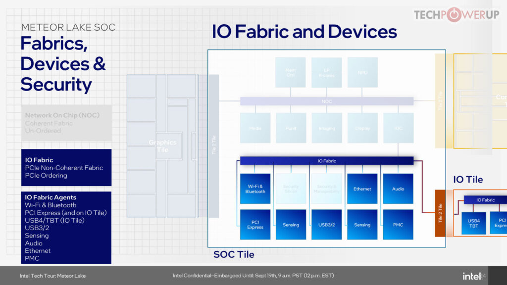 Inte incorporates an NOC (Network On Chip) to interconnect the various parts of the SoC Tile (See the second diagram). In the figure below, the SoC tile’s diversity is further proven by the fact that it functions as a PCH.