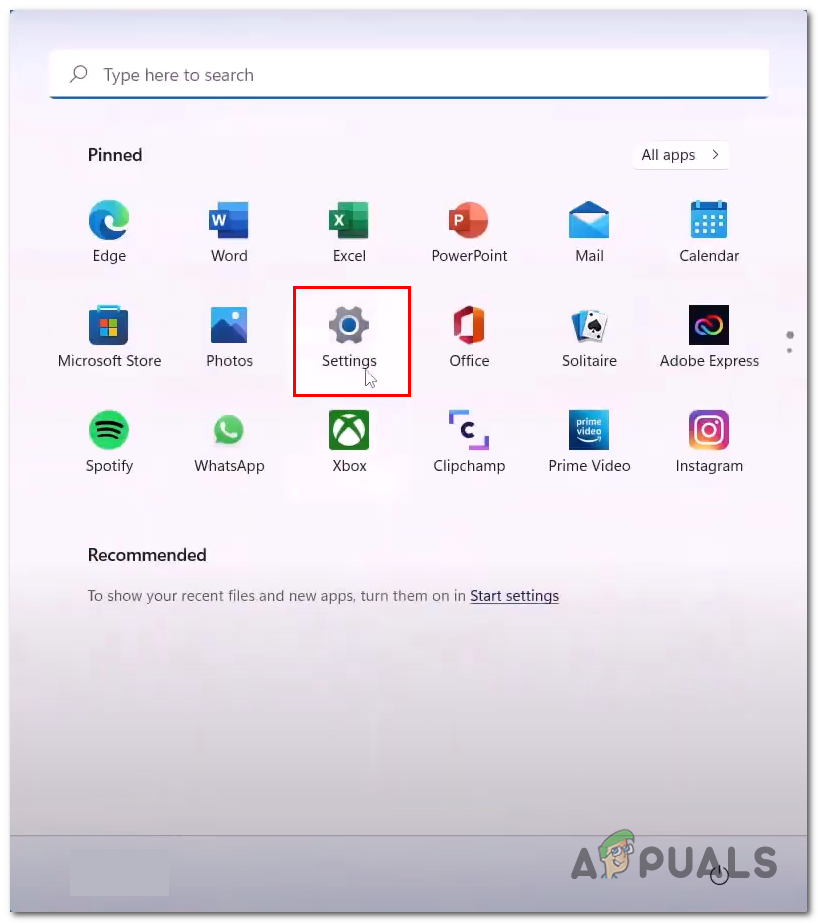 - On your keyboard, press the Windows key to open the start menu. Click on the Settings icon to open settings.