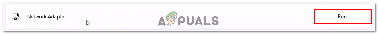 Opening Windows troubleshooter settings - Scroll down, Click on the Run button located inside the Network Adapter box, as shown in the image below.