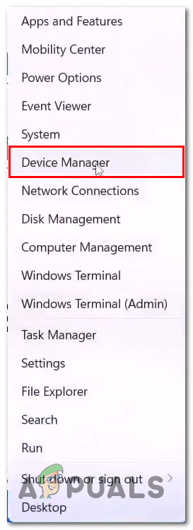 - Right-click on the windows icon at the bottom of your screen, and click on Device Manager.