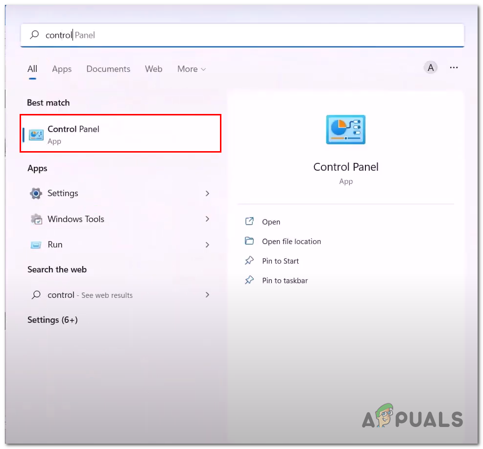 - Press the Windows key on your keyboard to open the start menu. In the start menu search bar, type Control Panel and open it.