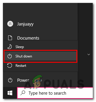 - Press the Windows key on your Keyboard to open the start menu and Click on the Power icon.