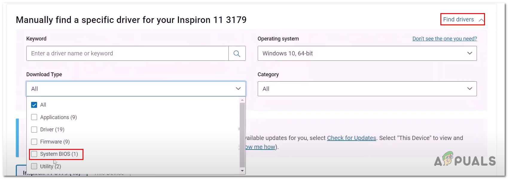 Updating system BIOS - Now, Specify your requirements in our case we are looking for the System BIOS file.