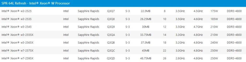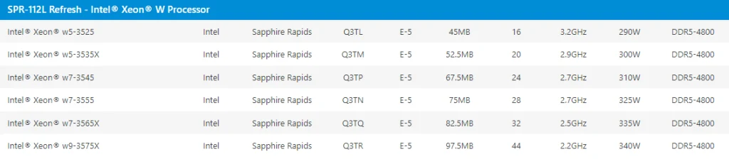 Intel Sapphire Rapids-WS Refresh ‘Xeon W3500/W2500’ Series Specifications Leaked