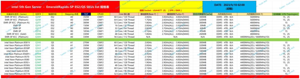 As initially unveiled by Intel, Emerald Rapids will offer up to 64 cores / 128 threads and 320MB of cache. These CPUs support DDR5-5600 memory and up to 80 PCIe Gen5 lanes. Most samples are now in their final phase of production and should hit shelves by Q4 2023.